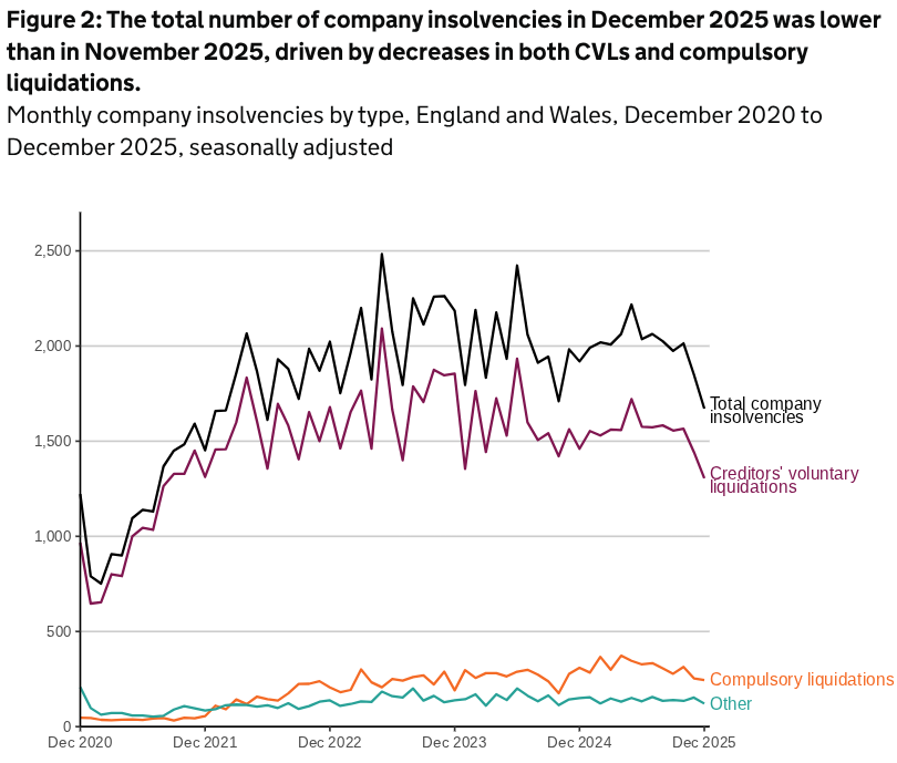 While the country was gearing up for Christmas and New Year’s Eve Celebrations, the economy was continuing to work in the background and we now have a full picture of the month with the latest corporate insolvency figures for December 2025, released by The Insolvency Service.
